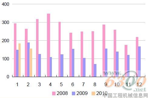 2008-2010年2月份挖掘机月度出口(单位:台)