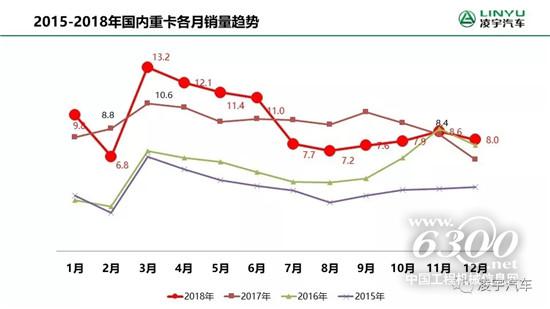 2018年的重卡销量可以用跌宕起伏来形容,从元月10万+的高起点开始,上半年一路高歌猛进,同比增长15%;7月份以后急转直下,且连续下滑,金九银十不再,但11、12月实现同比逆转,最终以“刷新历史纪录”而圆满收官。