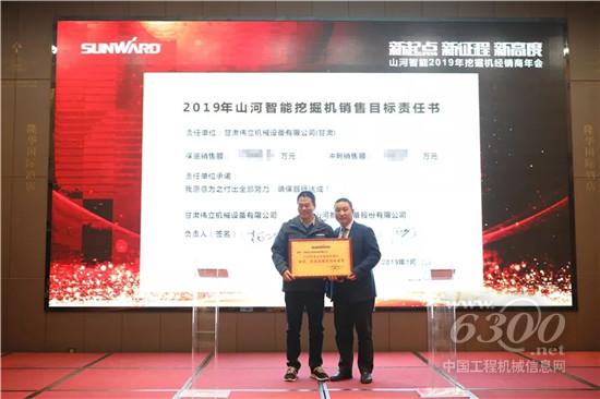 表彰过后,挖掘机营销公司总经理周杰奇分别与31家经销商签订了2019年目标责任状。