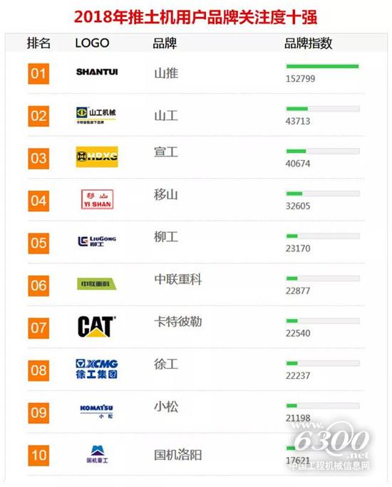这是继2009年中国路面机械网首次推出用户品牌关注度排行榜以来,连续第十一年推出该榜单。据悉,山推“品牌关注度排行榜”是基于中国路面机械网用户在2018年内对山推品牌、产品的浏览及在线询价次数而生成的山推品牌关注度指数。