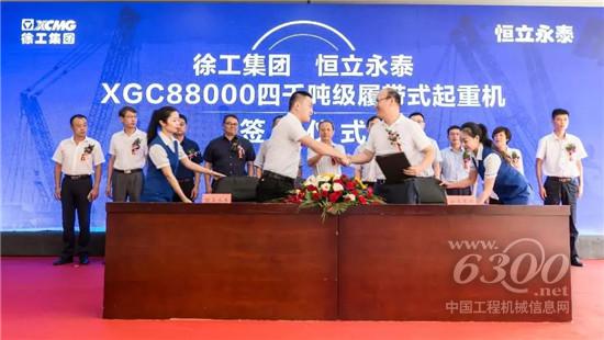 2018年8月17日,“徐工集团——恒立永泰XGC88000四千吨级履带式起重机签约仪式”在徐工建机隆重举行,全球最大移动式起重机再次实现市场突破。四千吨级履带起重机自投入工程应用以来,辗转全国十余个石化、煤化工工程工地,高频次、无间隔的完成了过百个,总重超过十万吨的重大关键装置吊装,取得了国产重大创新装备在工程实践上的充分验证,向世人展现科技创新带来的磅礴力量。