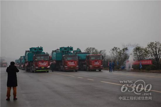 在一片热烈的掌声中,何清华董事长宣布发车!满载山河智能设备的100多辆运输车,浩浩荡荡地驶出公司大门,它们将奔赴全球,投身于各地的重点工程中,开启各自的价值创造之旅。