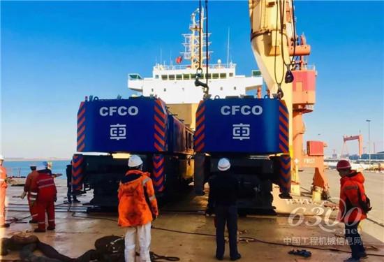 2019年3月25日,由中车齐齐哈尔车辆有限公司研制生产的2台100吨伸缩臂式1067mm轨距铁路起重机在天津大沽口港区成功出运,驶向目的港刚果共和国黑角港。