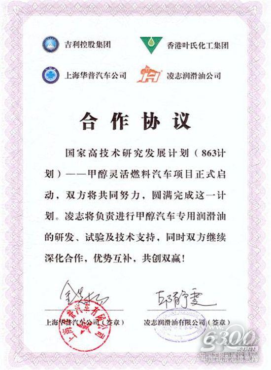 在双方的密切合作之下,2008年成功研发出的力士M100甲醇汽油发动机油专用油,是目前唯一吉利甲醇汽车通过发动机台架试验、行车试验及商业化的润滑油产品,为甲醇汽车的产业化提供了强有力的技术保障。
