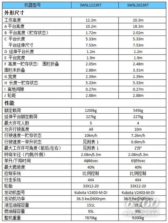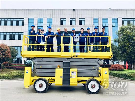 本次首发的越野剪叉式高空作业平台是山河智能最新研制的SWSL2023RT越野剪叉式高空作业平台。采用液压四轮驱动,具有结构简单、运行平稳、操作简便灵活、承载能力大、维修保养便捷、安全保护功能齐全等特点,优良的越野性能可适用于各种复杂路面。只需一人在工作平台上便可完成前后、升降、转向和调平等动作,连续作业性强,节能高效。该设备具有故障诊断系统、自动刹车系统、油管防爆系统、倾斜保护系统、超载报警、动作蜂鸣、喇叭、比例控制、四轮驱动、后桥浮动、后桥锁止、交流电接至平台、安全检修支架、调平支腿、折叠式护栏、双向延伸平台等功能。最大载重545kg,最大行驶速度7.2km/h,最大工作高度20m,最大爬坡能力40%,前后工作最大允许角度2°,左右工作最大允许角度3°。