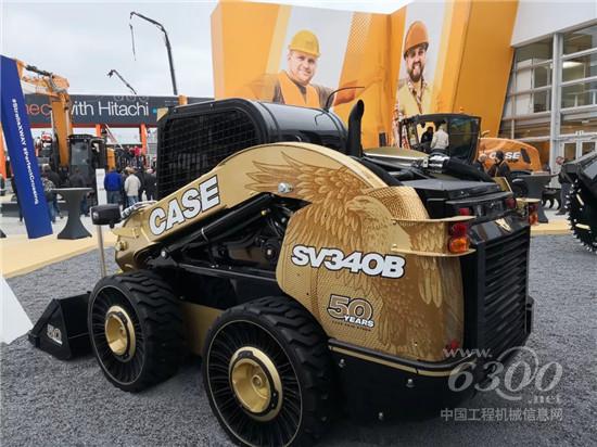 凯斯 SV340B 滑移装载机身着金色盛装出席展会,配以全新定制款专属内饰和独一无二的车贴图案。1969 款原版 Uniloader 同台一展风采。传统和现代、经典与创新在此交相辉映。