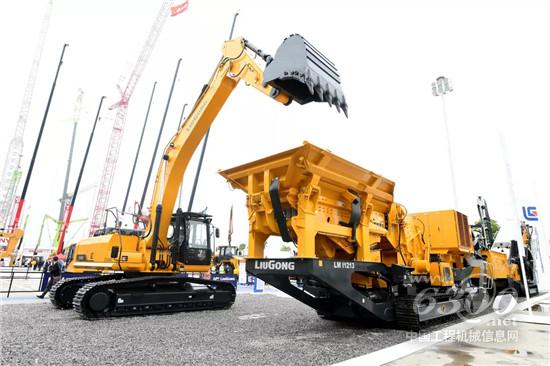 细心的观众还会发现,柳工室外整机展位展出了两个“黄金搭档组合”,一个是890H装载机搭配DW90A宽体车模拟采矿作业;而另一个组合是939E挖掘机、LM S48履带式反击式破碎站和LM I1213履带式筛分站在进行矿石破碎筛分的工况模拟,这两个组合便是矿山工程施工核心机械的成套产品组合,广泛应用于各类矿山作业。