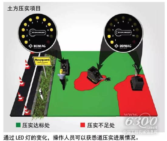 宝马格BW120AD-5型压路机独有的ECONOMIZER压实测量技术也深得客户的信赖与认可:通过LED 灯的亮灯数量的变化,操作人员可以获悉压实进展情况。