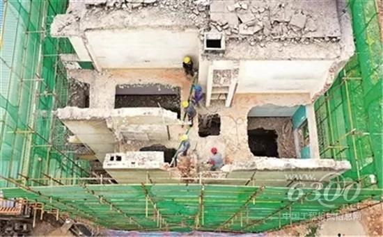 ■柳北区胜利路一小区内工人拆除房子后,把建筑垃圾装上密闭车厢的专车,运到市移动式建筑垃圾资源化项目基地。