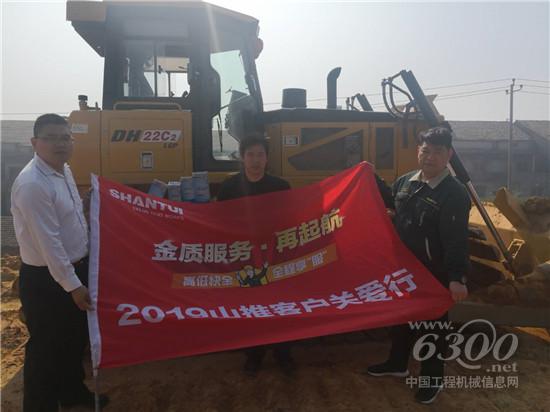 初夏的湖南,山推关爱行小组“一天当成两天半”,马不停蹄到达岳阳市装载机客户刘总所在工地。刘总经营采砂厂,持有山推SD16plus、山推50装载机、挖机等设备。