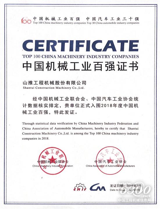 7月4日,由中国机械工业联合会、中国汽车工业协会主办的第十五届“中国机械工业百强、汽车工业三十强企业信息发布会”在黑龙江哈尔滨市召开。会上发布了2018年中国机械工业百强企业名单,山推工程机械股份有限公司以“高低快全”的产品,全年稳健上升的经营业绩,居第47位,比2017年上升2位。