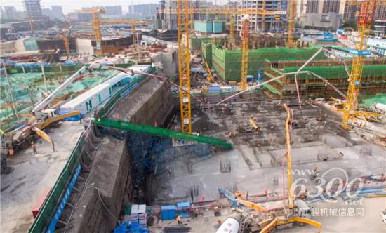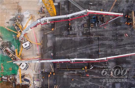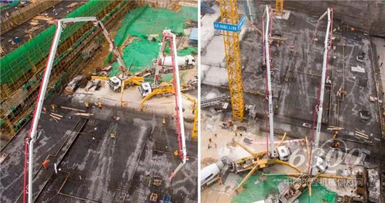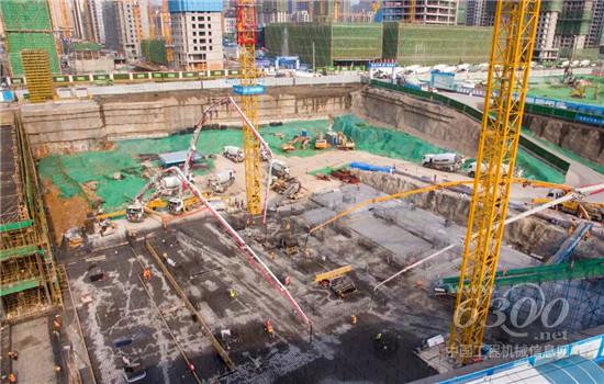 目前,该项目正在进行底板浇注,根据施工现场项目负责人介绍,该工程基坑深度达22米,基础筏板最大厚度7.7米,混凝土一次性浇筑方量达16000方,相当于3栋30层的住宅楼。4台徐工V7系列大米数泵车全程参与此次项目施工,为工程建设保驾护航。
