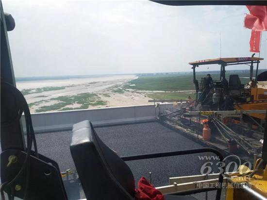 官渡黄河大桥施工难度较高,特别是桥面摊铺,要求施工高密实性、高平整性及高使用寿命,这些高标准对于施工设备而言极为严苛。为了保证桥面的使用寿命与摊铺质量,施工方使用了两台三一摊铺机进行双机联铺。