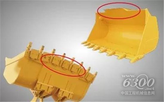 铲斗设计有防落物导流板,防止物料后落,有效保护动臂和油缸;斗壁内侧加强、斗底加耐磨板设计。
