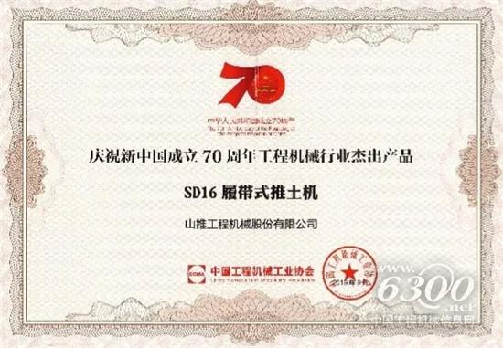 为庆祝新中国成立70周年,中国工程机械行业协会组织了行业系列成就评选。山推工程机械股份有限公司荣获“中国工程机械行业影响力企业”,推土机SD16、SD22荣获“行业杰出产品”等多项荣誉。