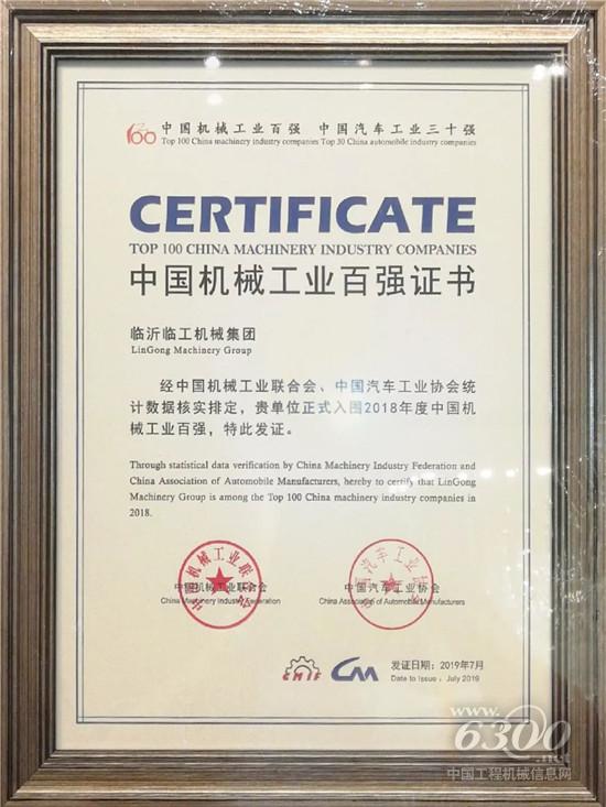 山东临工荣获2018年机械工业百强证书,并在工程机机械设备制造企业排名中,临工位列第3,打破垄断多年的国内工程机械行业前三甲排名的局面,临工开始步入工程机械行业前三的时代。