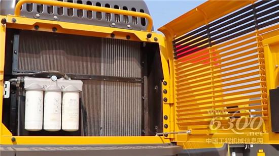 首先,考虑打锤状态下油温,采用独立散热系统,加大的散热器和大风扇增强了机器的散热能力;其次,动力采用沃尔沃13升高性能发动机,液压系统采用双泵合流,双回转马达,保障挖机有强大的动力输出和回转扭矩。其三,矿山型驾驶室、加强型底盘。最后,油浴式空滤+干式空滤,减少恶劣工况对挖机的损耗。