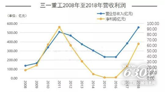 火爆的市场往往埋藏着危机,在2011年至2016年的六年间,三一重工为代表的工程机械行业经历了漫长的调整。在艰难的调整和转型中,包括三一重工寻求海外市场开拓,加之2017至2018年,受基建投资、国家加强环境保护政策力度、设备更新升级、人工替代、出口增长等多重因素影响,工程机械行业市场高速增长,行业整体盈利水平大幅提升,行业龙头企业产品竞争力及市场份额大幅提升,三一重工逐步恢复了生机。