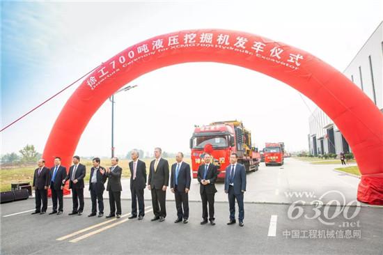 中国工程机械工业协会会长祁俊,徐工董事长、党委书记王民,中国大型露天矿客户代表,徐工机械总裁、党委副书记陆川,徐工机械副总裁吴江龙,徐工有限副总经理、徐工矿机总经理李宗,徐工机械副总裁、徐工进出口总经理刘建森,康明斯集团副总裁Steve Chapman,康明斯集团副总裁、中国发动机事业部总经理刘晓星,康明斯动力系统事业部中国区总经理相永东等一行以及行业媒体等合作伙伴,徐工各级领导以及徐工矿机员工代表等千余人齐聚一堂,共同见证这台中国吨位最大、代表中国高端装备最高技术水平液压挖掘机奔赴矿区的历史性时刻。