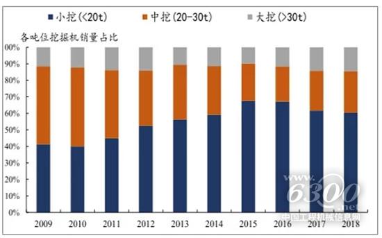 中大挖比重持续提升,表明基建和矿山需求占比提升