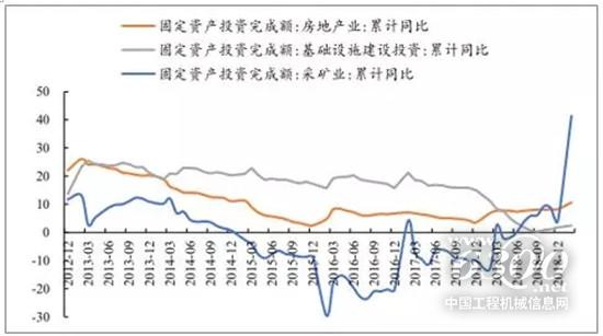 从2017年固定资产投资额结构看,基建、地产、矿山占比分别为27.4%、22.1%和1.5%。2019年1-2月,固定资产投资完成额同比增长6.1%,较18年提升0.2pct,其中基建、地产和矿山开采投资额同比分别增长2.5%、10.6%和41.4%,较18年分别提升0.7pct、2.3pct和37.3pct。
