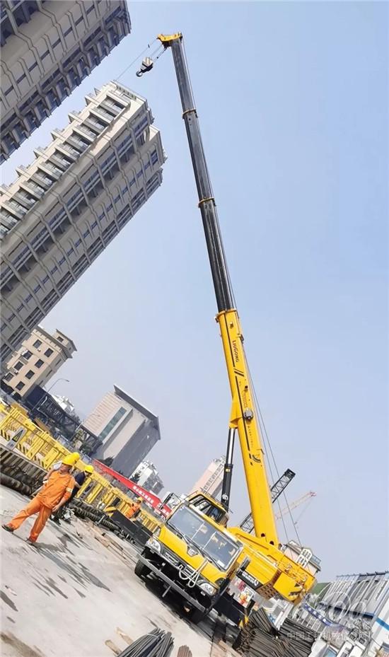 在杭州地铁8号线建设现场,可以看到柳工起重机将坚实的黄色大臂插入云霄之中,成为一道亮丽的风景线。
