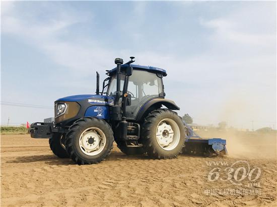 雷沃欧豹无人驾驶拖拉机牵引旋耕机进行耕整作业