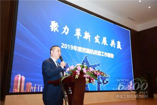 会上,山河智能挖掘机事业部副总经理周杰奇作挖掘机业务工作汇报,他就2019年挖掘机行业市场动态、山河挖掘机市场运行状况以及2020年工作部署与目标分别进行了阐释。
