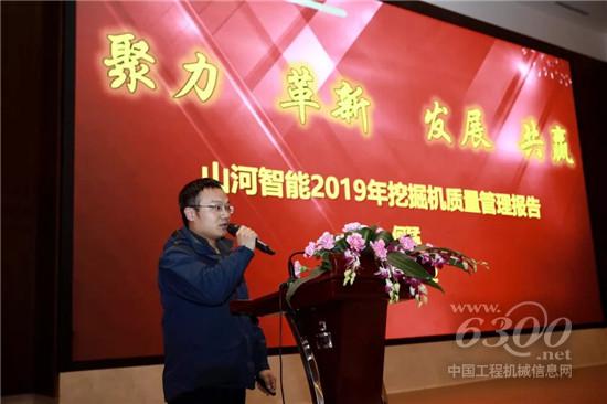 山河智能挖掘机事业部副总经理范峥嵘作技术分享,品质管理部总监何猛作品质管理报告。两人分别对山河智能2019挖掘机的技术亮点与品质管理工作进行总结。