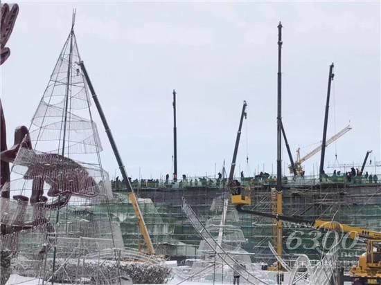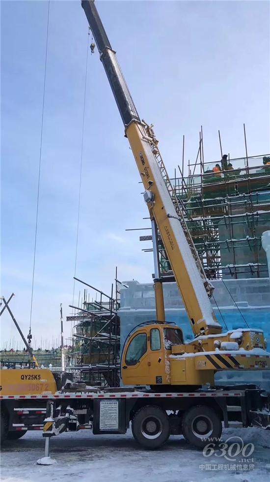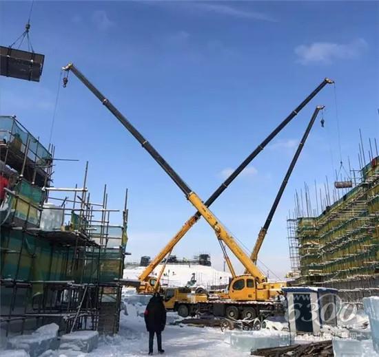 大世界在建造的过程中正值哈尔滨一年当中最冷的时节,风雪随时降临,起重机不仅要扛住极寒,“不熄火”;更要保持原有机能,“不迟缓”。徐工K系列25吨级和G一代25吨级产品在此项目中应用最为广泛。由于今年首次用冰建造了主体21米高的世界上最大的“冰奥运火炬”;157米长的“礼赞七十年”雪雕以及420米长的冰滑梯亦是世界之最。施工现场“吊高送远”需求高,因此不少QY70k-1也作为新成员加盟其中。