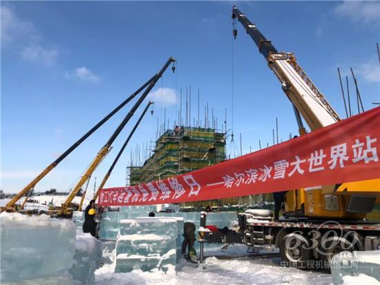 据了解,第21届哈尔滨冰雪大世界在2019年12月初开始取冰造景,无数块长1.6米,宽0.8米,高0.5米,重达一吨的冰块被源源不断运送至施工现场。本届,XCT25、QY25K5-1、QY70k-1在内的50多台徐工起重设备现场效力。