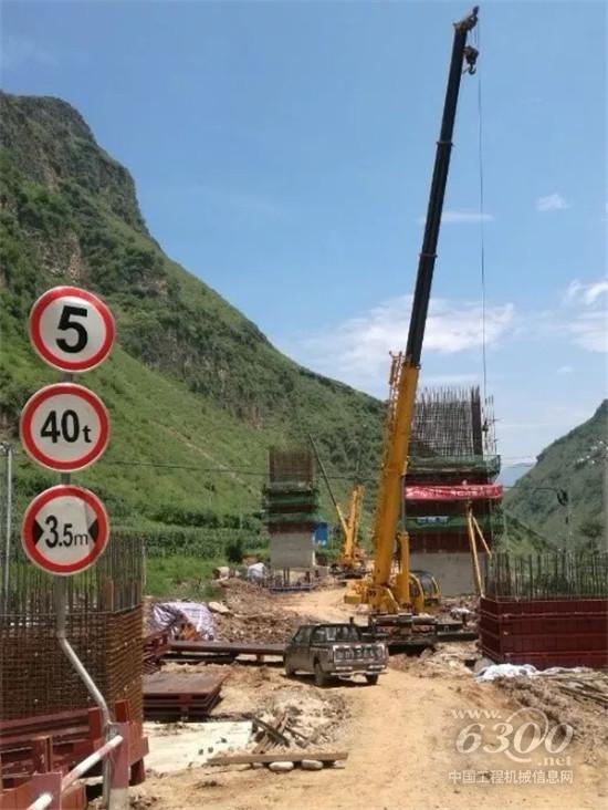 QY25K5-1携QY30K5,QY20K5大小兄弟,云南省华丽高速马过河隧道桥,马过河隧道桥施工难度大,跨距长,项目的完成将成为高原山区施工的经典工程。