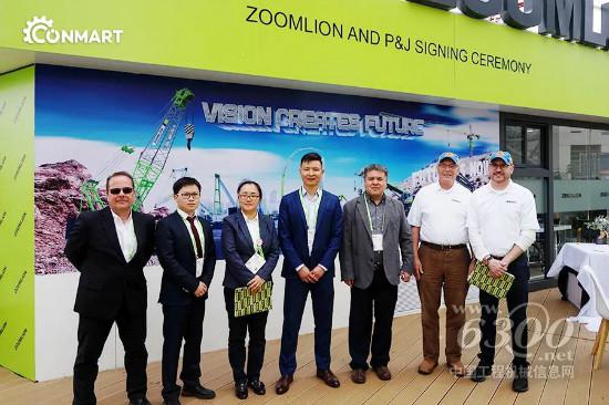 中联重科建筑起重机械公司美洲区经理言欢和P&J Arcomet总裁Stephen Jehle代表双方签约,中联重科北美子公司总经理王曙、中联重科海外公司美洲区经理张思,P&J Arcomet前总裁Peter Jehle,P&J Arcomet财务总监Brian Rolsto共同出席见证了签约仪式。