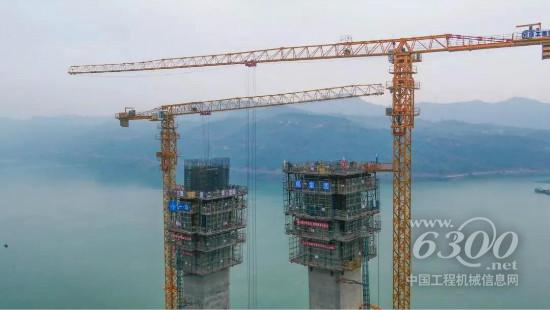 作为国内山区首座PPP模式下实施全生命周期BIM+技术的千米级特大桥,高度为177.5米的钢筋混凝土主塔,相当于60层楼的高度,矗立于长江两侧。晴雨莫测、地势复杂、施工高度高、昼夜施工不间断作业……一系列复杂的施工条件,其施工难度不言而喻,对于塔机的各项性能都是极大的考验。