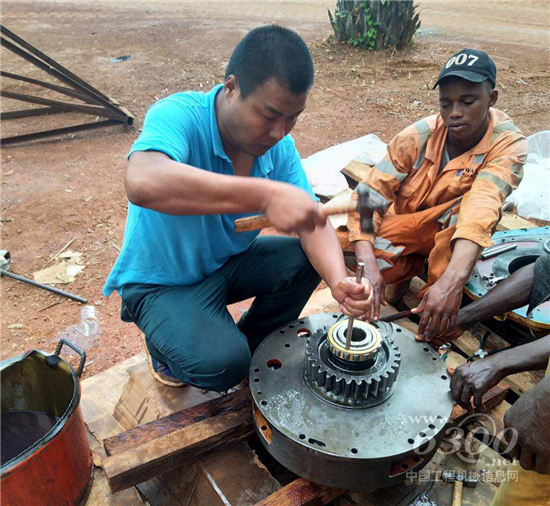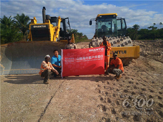 由于项目工期紧,任务重,工况复杂,为确保设备的正常施工,山推派遣海外服务人员前往施工现场进行长期的操作保养、维修指导。在近一年来的服务支持工作期间,山推服务人员身处非洲山林深处,在艰苦的作业环境下做好保期内设备正常运行的同时,积极协助客户维修保外设备,及时解决多项疑难故障。在应急抢修方面,遇到紧缺配件时,能够高效、快速的与山推总部联络,协调运输,以最短的时间将设备修复使用。