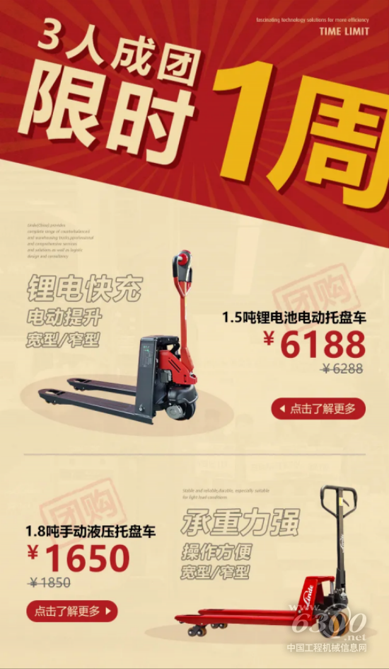 In May, the group purchase activity of Linde E-commerce Mini Program was hot! 3 people can get a special buying for a limited time! Activities include 1.5-ton Li-ion battery pallet forklift, 1.8-ton/2-ton/2.5-ton/3-ton manual pallet trucks, etc., which caused great concern from customers.