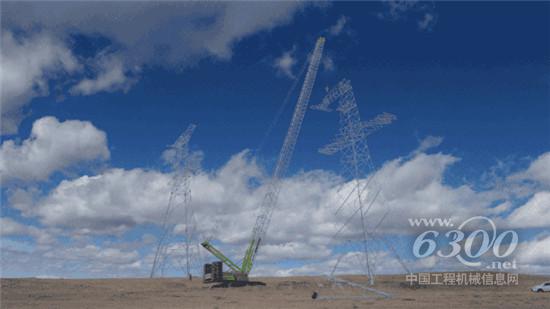 ▲中联重科ZCC1800H履带起重机正在架设输电线路铁塔