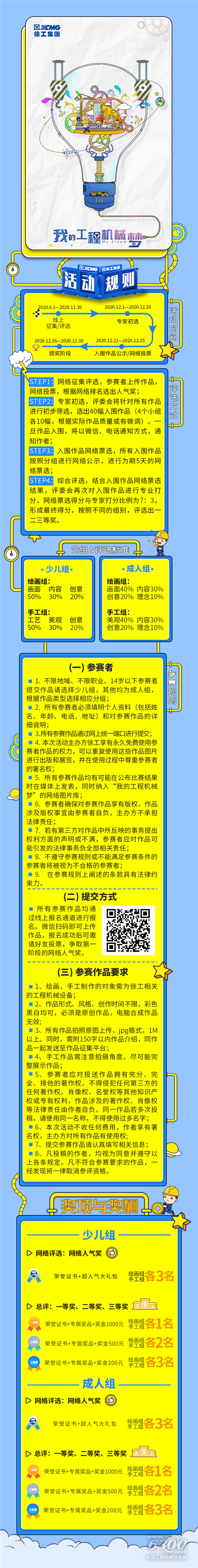 2020年6月1日,徐工“我的工程机械梦”主题创意作品大赛正式启幕,面向全球征集工程机械绘画、手工作品,通过线上公选与线下专家评选相结合的方式,遴选出年度优秀作品。所有人气作品、入围作品、获奖作品,均统一颁授荣誉证书及相应奖励。