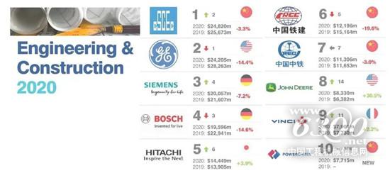 英国品牌评估机构“品牌金融”(Brand Finance)发布“2020全球最有价值的50大工程和建设品牌”排行榜(Engineering & Construction 50 2020)。从上千家公司中,约翰迪尔脱颖而出,以83.30亿美元位列全球最有价值50大工程和建设品牌第八名。
