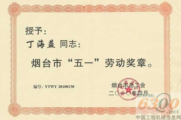 斗山丁海益总经理获烟台市“五一劳动奖章”