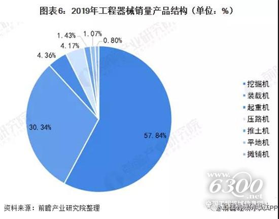 我国工程机械种类繁多,是全球工程机械产品类别、产品品种最齐全的国家之一,拥有20大类,109组,450种机型,1090个系列,上万个型号的产品设备。正因为我国工程机械品类齐全,系列化、成套化优势突出,为国家经济建设提供了工程机械装备保障。从市场结构来看,挖掘机、起重机、压路机以及推土机这四个工程常用器械占据了我国工程器械市场上绝大部分的份额,其中,挖掘机为工程机械中的明星产品,占据市场绝对主流地位,2019年销量占比为57.84%;其次为装载机,占比30.34%。