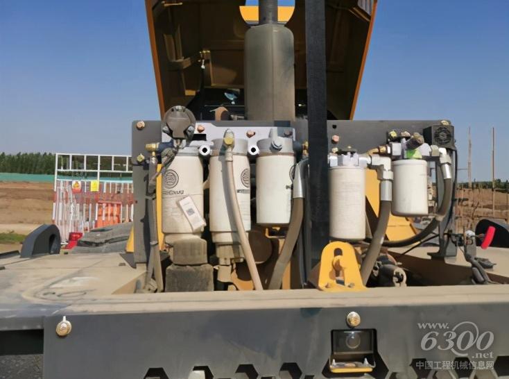 又压实了一段道路后,小李从驾驶室出来,又补充到:“这几天试了一下油耗,加满一次油可以工作20个小时,油耗比较低。整机的滤芯集中布置在整机后侧,打开机罩就可以进行各个滤芯的保养,保养的时间很低,这样就不耽误干活了!而且在整机前后侧设置了拖车钩,在压路机陷入泥泞路面时,很容易拽出来。”
