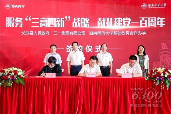 服务“三高四新”战略,献礼建党一百周年。6月28日,长沙县政府、三一集团、湖南师范大学合作签约仪式在三一长沙产业园隆重举行,三一集团将兴建两所“附中”和一所“学院”,助力更多学子成为国家栋梁之才。三一集团将出资2000万元,在湖南师范大学挂牌成立一所融人才培养、师资建设、科学研究、理论创新于一体的“三一现代产业学院”,助力湖南“三高四新”战略实施。