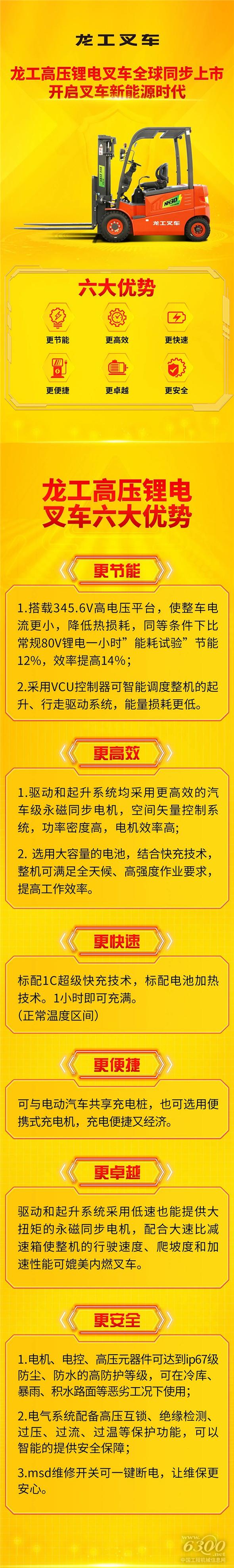 龙工高压锂电叉车全球同步上市,开启叉车新能源时代!