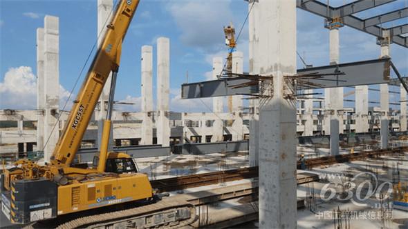 而作业空间十分逼仄的钢结构厂房框架建设,却是徐工伸缩臂履带起重机极强作业灵活性、极高场地适应性等优势大展身手的舞台。