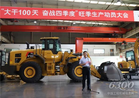 9月22日上午,以“大干100天、奋战四季度”为主题的旺季生产动员大会在挖掘机总装车间下线处举行。工程机械班子成员、生产部、采购部、质量管理部全员、各职能部门管理干部及业务骨干,共计约900人参加启动仪式。