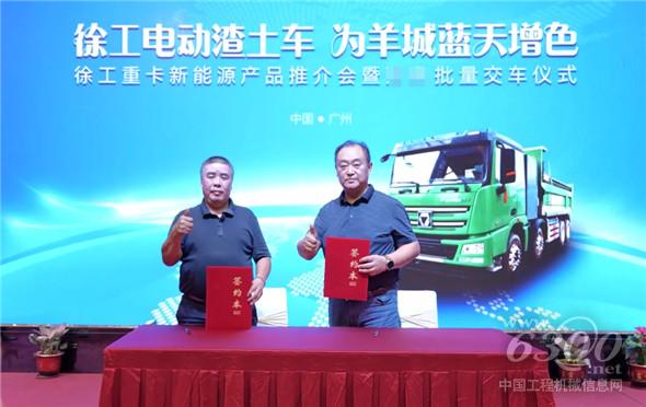 本次活动,徐工与广州大客户签署了500台订单深度合作协议,并现场向广东某建设投资公司交付50台纯电动渣土车,徐工电动重卡正式入驻广州,助力羊城绿电交通,为城市碧水蓝天增色。