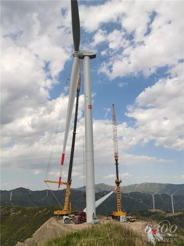 在山西大唐浑源凌云口风电项目的施工现场,高塔筒,大叶片,山高坡陡,路面狭窄,面对着一排排亟待检修的3.0WM风机以及崎岖复杂的施工地形,徐工两大“擎风勇士”XCA1600和QAY650A组团出击。