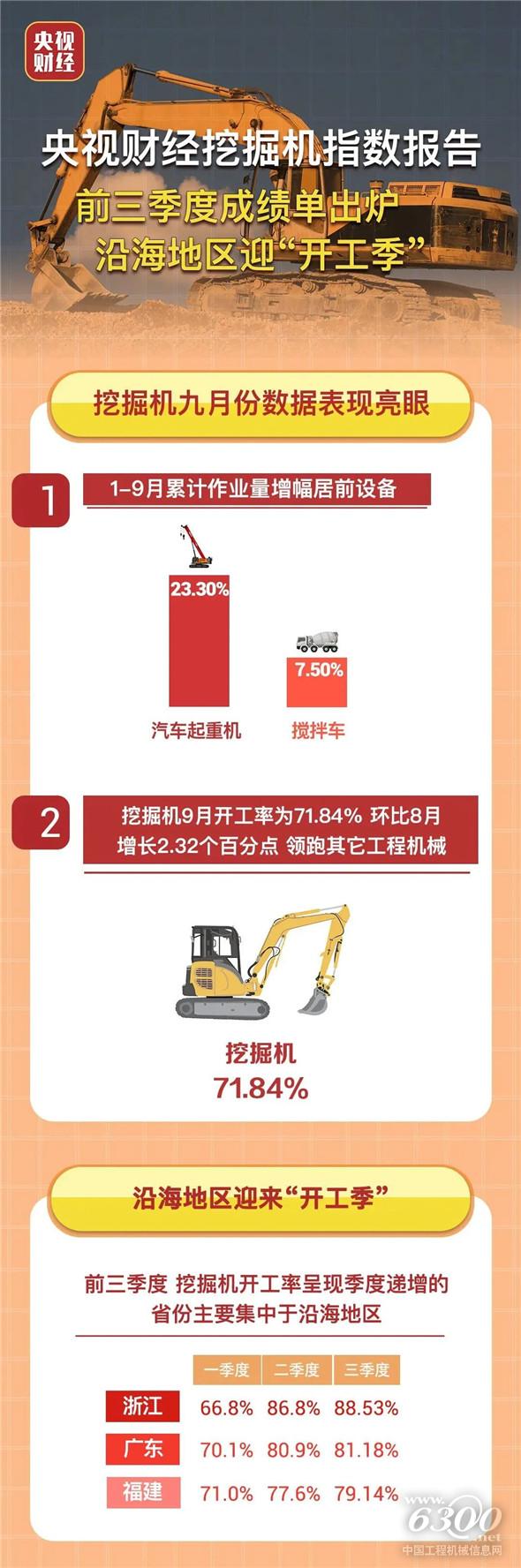 央视财经挖掘机指数显示,2021年1-9月,我国各类工程机械累计作业量继续稳步增长,累计作业量增幅居前的设备,分别为汽车起重机(23.30%)和搅拌车(7.50%)。