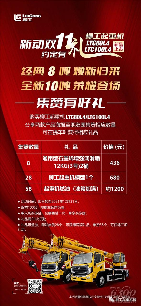“新”动双11 约定有礼|柳工起重机8吨10吨新品上市